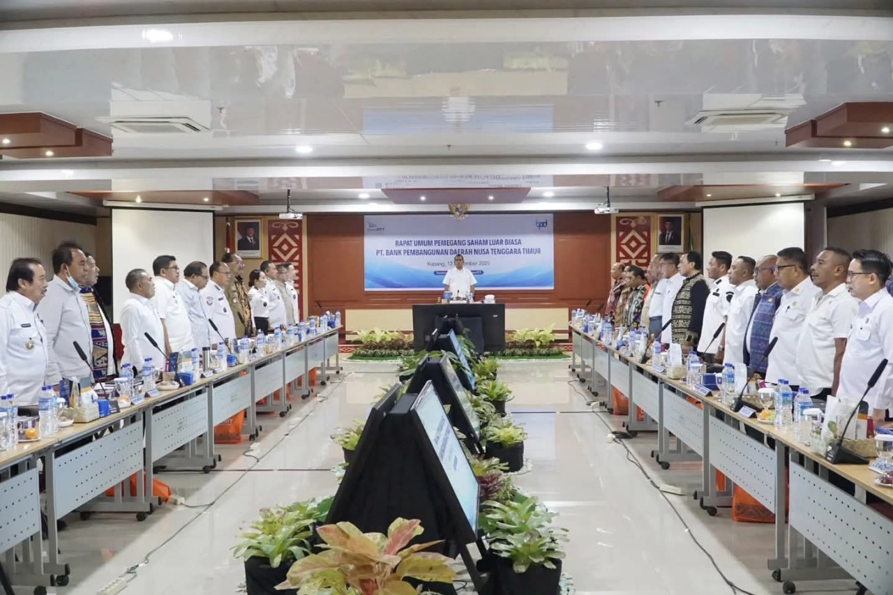 KUPANG, NTT – Sebagai pemegang saham pengendali, Gubernur Nusa Tenggara Timur (NTT) Melki Laka Lena memimpin Rapat Umum Pemegang Saham (RUPS) Luar Biasa Bank NTT, Rabu (12/11/2025). Rapat berlangsung lancar dan penuh semangat kolaborasi, sekaligus menjadi titik penting dalam arah baru pengelolaan Bank NTT.