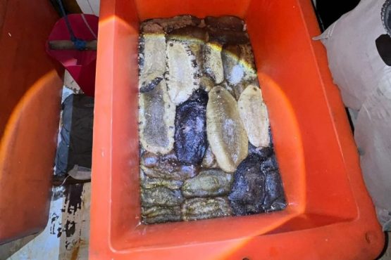 Selain teripang, sejumlah alat turut diamankan sebagai barang bukti, antara lain peralatan selam, satu unit kompresor, kaki katak, serta lebih dari delapan karung garam yang diduga digunakan dalam proses pengolahan hasil tangkapan.