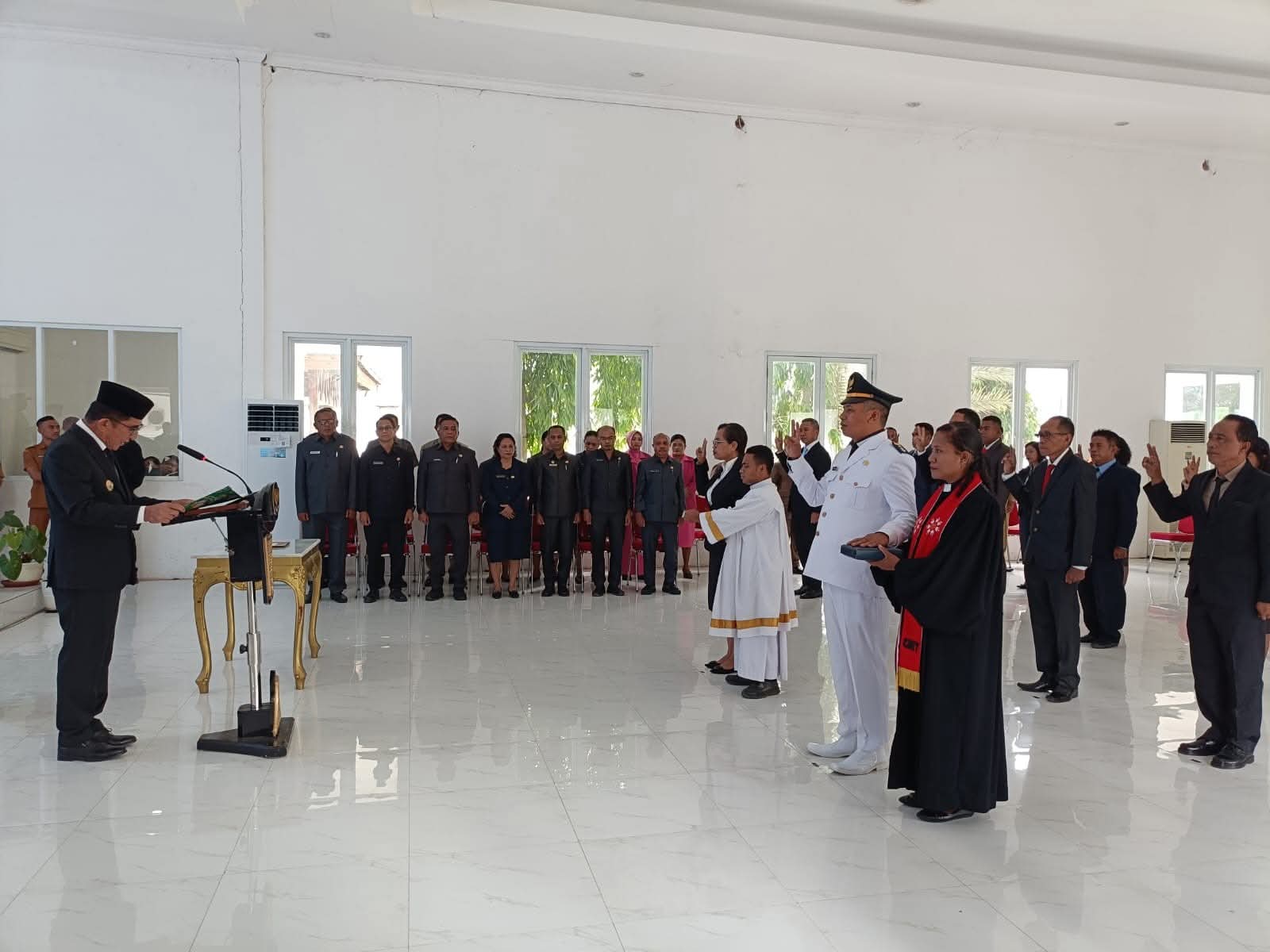 ATAMBUA – Bupati Belu Willybrodus Lay, SH memimpin Pengambilan Sumpah Jabatan, Pelantikan, dan Pengukuhan Pejabat Aparatur Sipil Negara (ASN) di lingkungan Pemerintah Kabupaten Belu, Senin, 22 Desember 2025.
