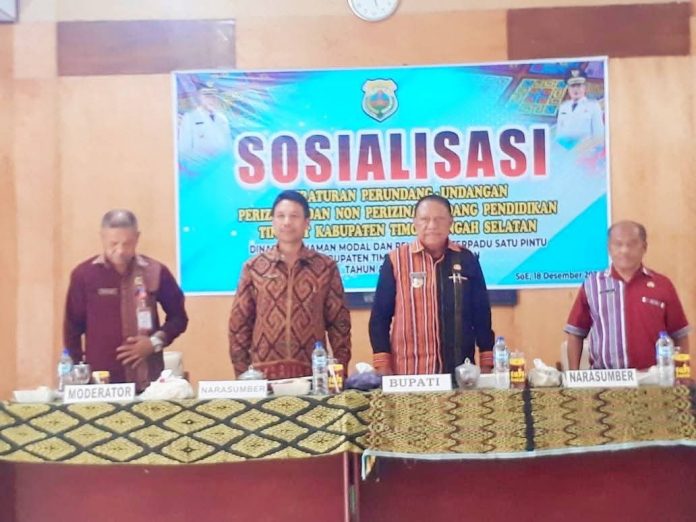SOE, TTS – Bupati Timor Tengah Selatan (TTS), Eduard Markus Lioe, S.IP., S.H., M.H., secara resmi membuka kegiatan Sosialisasi Peraturan Perundang-undangan Perizinan dan Nonperizinan Bidang Pendidikan Taman Kanak-Kanak (TK) Kabupaten TTS, Kamis (18/12/2025).