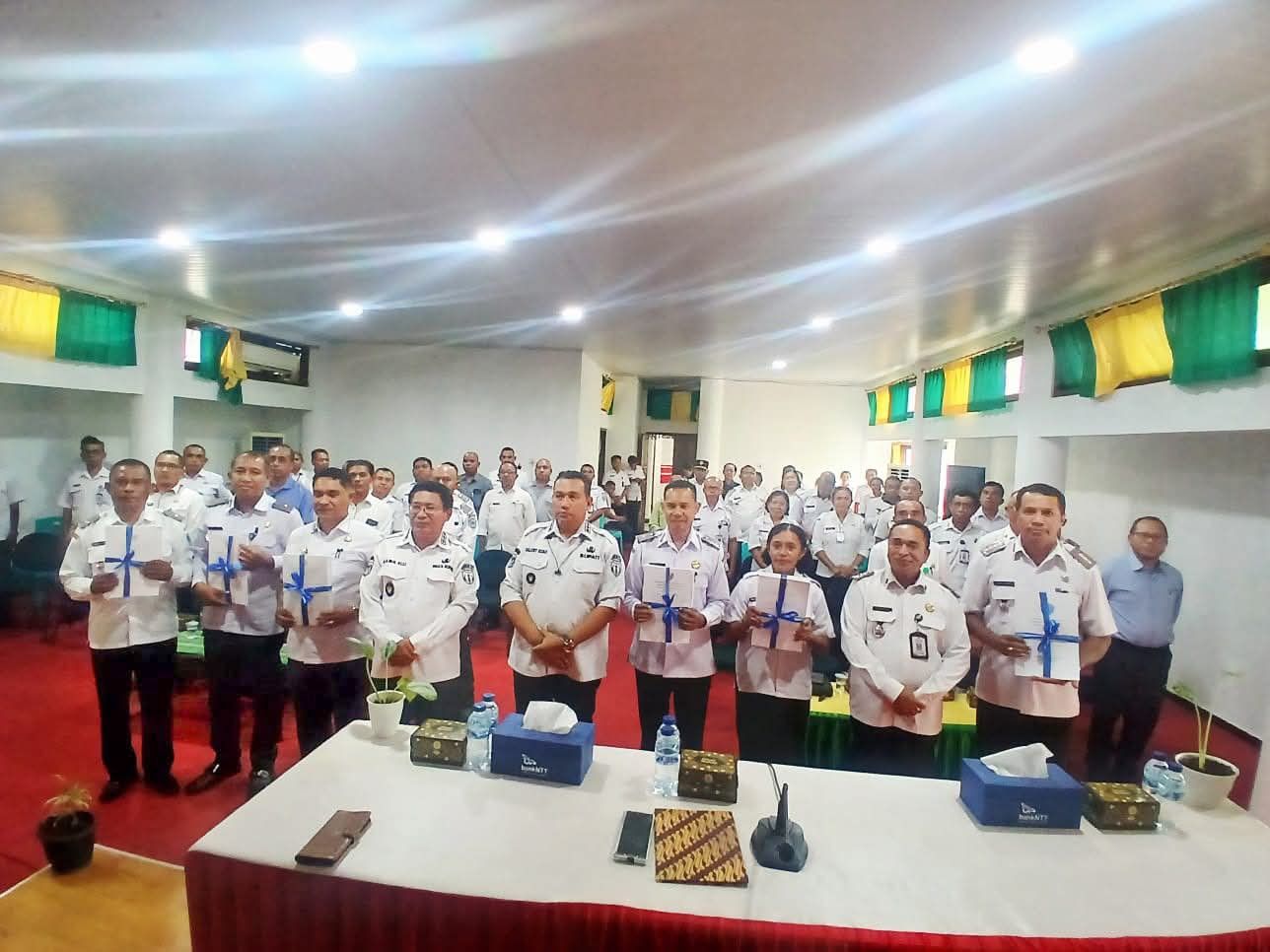 KEFAMENANU, TTU — Bupati Timor Tengah Utara Yosep Falentinus Delasalle Kebo menyerahkan secara simbolis Dokumen Pelaksanaan Anggaran (DPA) Tahun Anggaran 2026 kepada para pimpinan perangkat daerah, Rabu (21/1/2026), di Aula Lantai II Kantor Bupati Timor Tengah Utara.