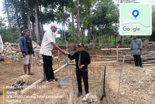 Prosesi peletakan batu pertama oleh Camat Kuatnana disaksikan oleh kepala desa, pendamping desa, serta tokoh masyarakat sebagai simbol dimulainya pembangunan fisik yang ditargetkan rampung dalam beberapa bulan ke depan.