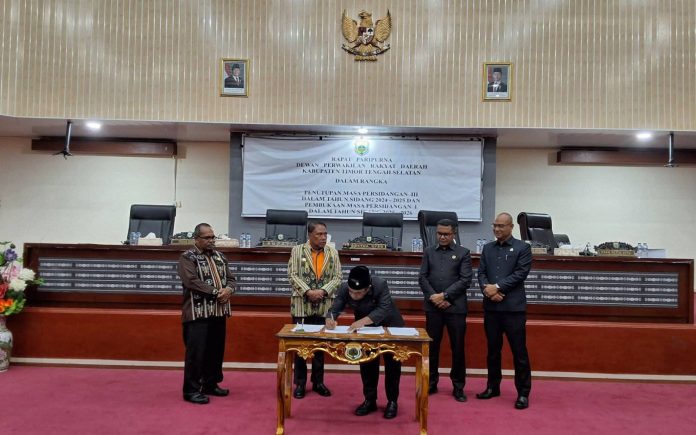 SOE, TTS – Dewan Perwakilan Rakyat Daerah (DPRD) Kabupaten Timor Tengah Selatan (TTS) menggelar rapat paripurna yang dipimpin langsung Ketua DPRD, Mordekai Liu, pada 18 September 2025.