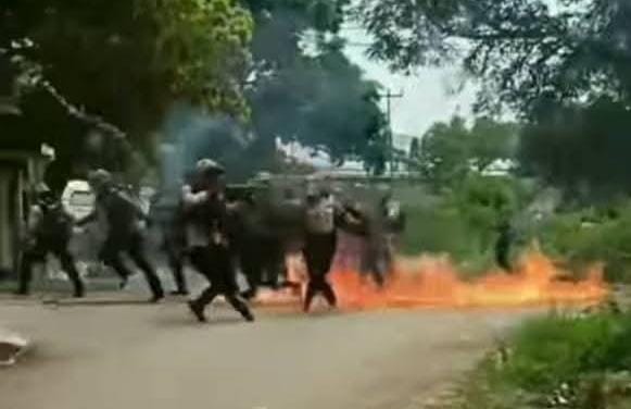 Kericuhan terus meluas. Satu unit mobil pemadam kebakaran (Damkar) yang bersiaga di lokasi dirusak massa. Bahkan, aparat sempat berada dalam situasi berbahaya setelah diduga ada pelemparan bom molotov ke arah kelompok polisi yang bertahan di garis depan.