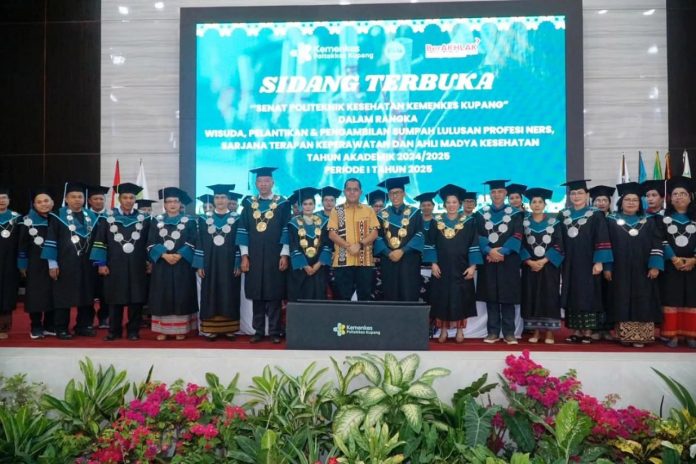 KUPANG, NTT — Gubernur Nusa Tenggara Timur (NTT), Emanuel Melkiades Laka Lena, menghadiri Wisuda, Pelantikan, dan Pengambilan Sumpah Lulusan Profesi Ners, Sarjana Terapan Keperawatan, dan Ahli Madya Kesehatan Tahun Akademik 2024/2025 Poltekkes Kemenkes Kupang, Kamis (16/10/2025).