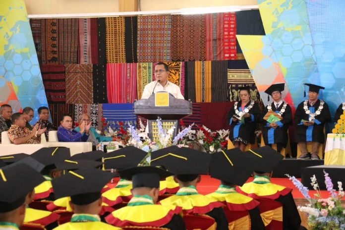 Menutup sambutannya, Gubernur Melki berpesan kepada para wisudawan agar menjadikan gelar akademik sebagai tanggung jawab moral dan sosial dalam berkarya.