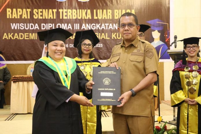 KUPANG – Gubernur Nusa Tenggara Timur (NTT), Emanuel Melkiades Laka Lena, menghadiri Rapat Senat Terbuka Luar Biasa Wisuda Diploma III Angkatan XXV Akademi Pekerjaan Sosial Kupang Tahun Akademik 2024/2025, yang digelar di Hotel Kristal Kupang, Selasa (16/12/2025) siang.