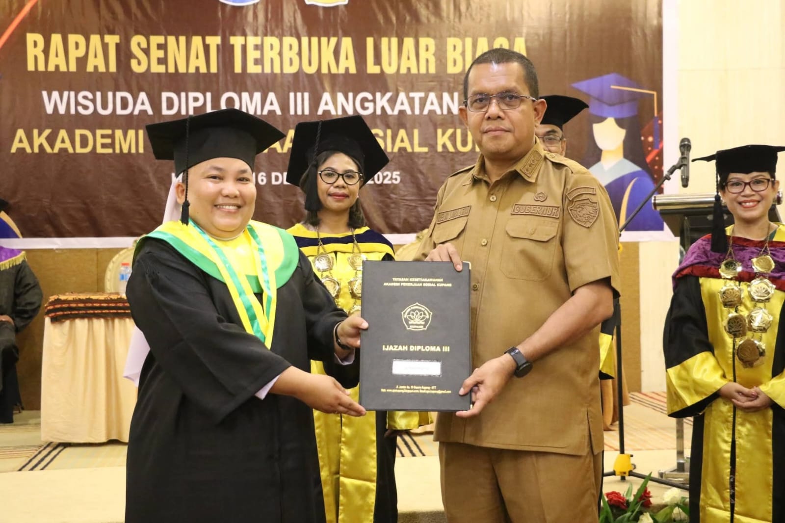 Secara khusus, Gubernur Melki berpesan agar para wisudawan bekerja dengan hati dan menjaga integritas dalam setiap pengabdian.