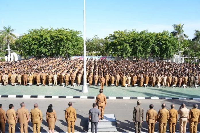 Apel dihadiri Wakil Gubernur Johni Asadoma, Staf Ahli Gubernur, Asisten Sekda, serta para pimpinan perangkat daerah. Dalam amanatnya, Gubernur Melki menegaskan akan menindak tegas ASN yang tidak disiplin. “ASN yang tidak ikut apel dan malas dalam pelaksanaan tugas harian dilaporkan berjenjang ke Inspektorat, BKD, hingga ke meja saya. Kita proses, kita tindak, mulai dari teguran tertulis hingga pemberhentian dengan tidak hormat,” tegasnya.