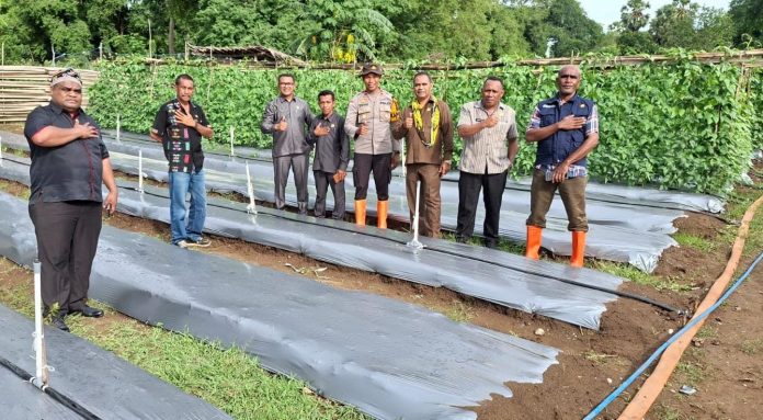 Rombongan melihat secara langsung pemanfaatan lahan seluas kurang lebih 60 are atau sekitar 6.000 meter persegi di lingkungan Polsek Kualin, Kecamatan Kualin. Lahan yang sebelumnya berupa tanah pasir di kawasan pesisir pantai itu kini berubah menjadi sentra hortikultura terpadu yang produktif.