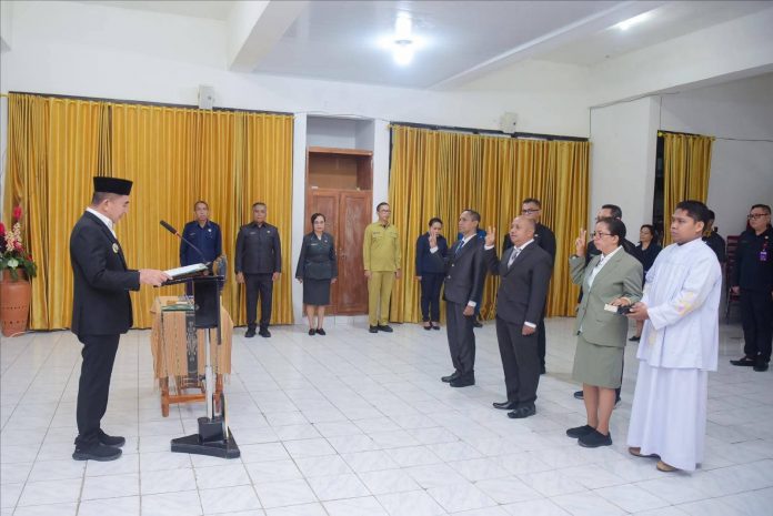 Adapun pejabat yang dilantik yakni Balasius Manek Lonis, S.Sos sebagai Kepala BKPSDM Kabupaten Belu, Getrudis Diduk, SH sebagai Kepala Dinas Dukcapil, serta Egidius Marten Manek, S.STP sebagai Kepala Badan Pendapatan Daerah.