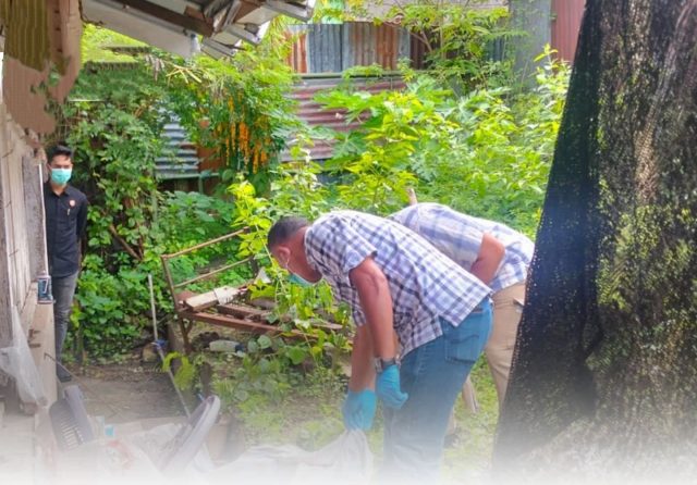 Saksi melihat pintu rumah korban terbuka namun pagar tertutup serta mencium bau tidak sedap dari arah rumah korban. PR kemudian menghubungi kakak kandung korban, EBB (51).