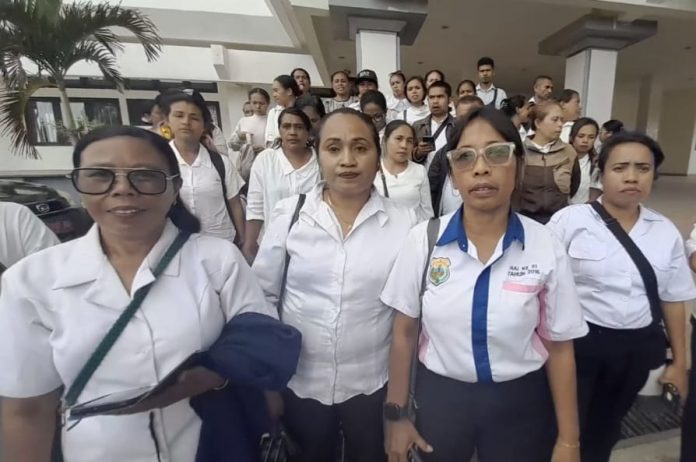 SOE, TTS – Ratusan tenaga honorer di Kabupaten Timor Tengah Selatan (TTS) yang masuk dalam daftar calon Pegawai Pemerintah dengan Perjanjian Kerja (PPPK) paruh waktu kembali menggelar aksi demonstrasi di halaman Kantor Bupati TTS, Rabu (8/10/2025). Mereka menuntut kejelasan nasib setelah pemerintah daerah tak kunjung mengusulkan pengangkatan mereka ke pemerintah pusat.