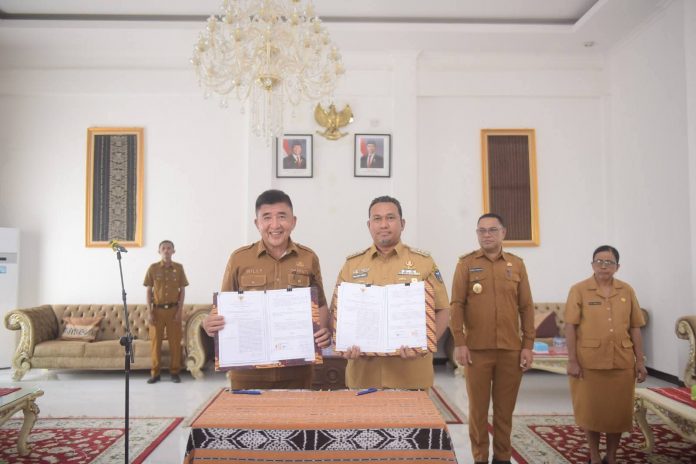 Atambua – Pemerintah Daerah Kabupaten Belu dan Pemerintah Daerah Kabupaten Timor Tengah Utara (TTU) menandatangani kesepakatan bersama dalam bidang pelayanan kesehatan bagi masyarakat Kabupaten Timor Tengah Utara. Kegiatan tersebut berlangsung di Rumah Jabatan Bupati Belu, Senin (09/02/2026).