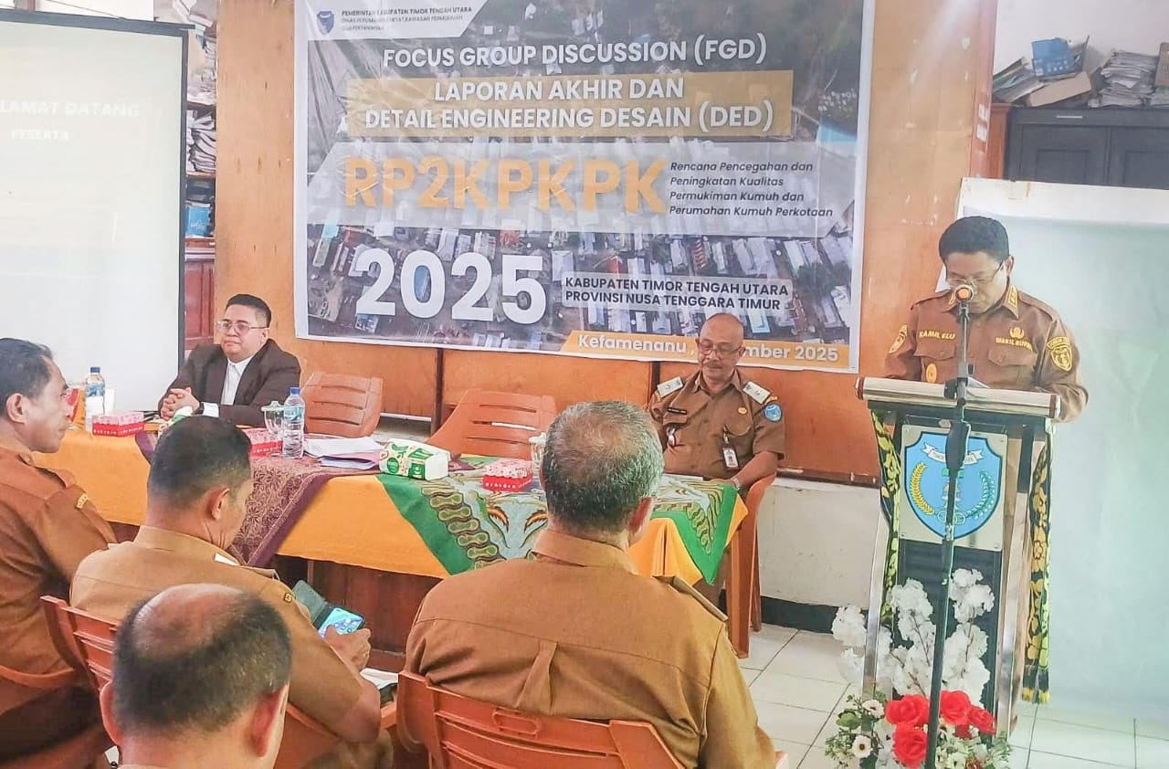 Komitmen tersebut ditegaskan dalam Focus Group Discussion (FGD) Laporan Akhir dan Detail Engineering Design (DED) Rencana Pencegahan dan Peningkatan Kualitas Permukiman Kumuh Perkotaan (RP2KPKPK) Kabupaten TTU Tahun 2025.