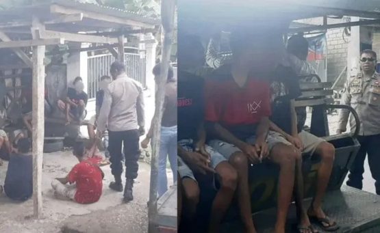 Mendapat informasi itu, Kapolsek langsung menginstruksikan personel piket untuk bergerak ke tempat kejadian. Setibanya di lokasi, petugas mendapati sepuluh pemuda sedang asik menenggak miras di area tersebut.