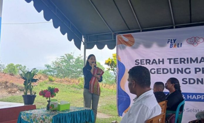 Rangkaian acara berlanjut dengan penyerahan tanda kasih, pengguntingan pita, serta penyerahan kunci gedung perpustakaan dari donatur dan Happy Hearts Indonesia kepada pihak sekolah sebagai simbol resmi beroperasinya fasilitas tersebut. Kepala Bidang SD Dinas Pendidikan dan Kebudayaan TTS, Yordan Liu, turut hadir dan menyampaikan apresiasi Pemerintah Daerah atas kontribusi nyata Fly Bali dan Happy Hearts Indonesia dalam mendukung pendidikan di TTS.
