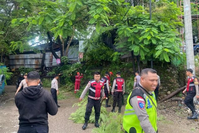 Di lapangan, Kabagops AKP Mesakh Yohanis Hetharie bersama Kasat Samapta AKP Stevenson Albertino Bessie memimpin langsung penanganan. Personel melakukan pengaturan arus lalu lintas, memasang garis pembatas, hingga memotong batang dan ranting pohon menggunakan mesin chainsaw agar akses jalan kembali terbuka.