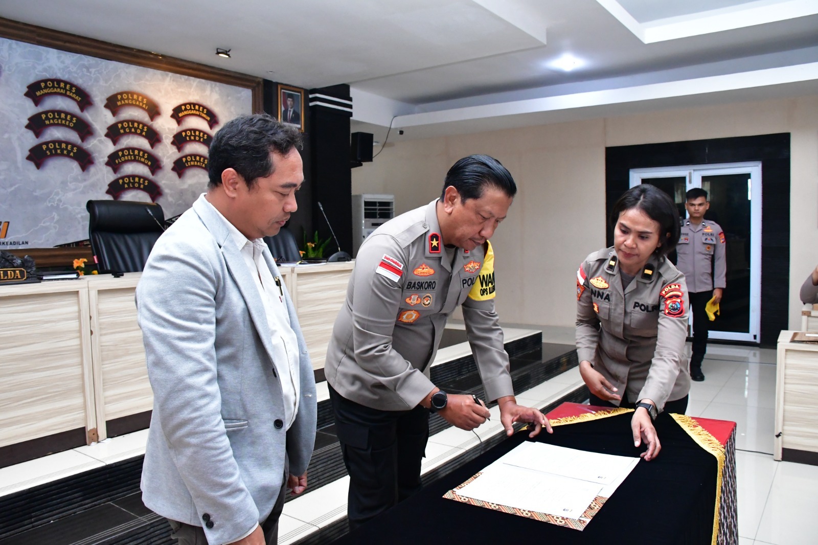Penandatanganan MoU digelar di Mapolda NTT, Rabu (8/10/2025), oleh Wakapolda NTT Brigjen Pol. Baskoro Tri Prabowo, S.I.K., M.H., mewakili Kapolda NTT, dan Dr. Lukas Banu, S.H., M.H., selaku Chairman IOJ Law Firm.