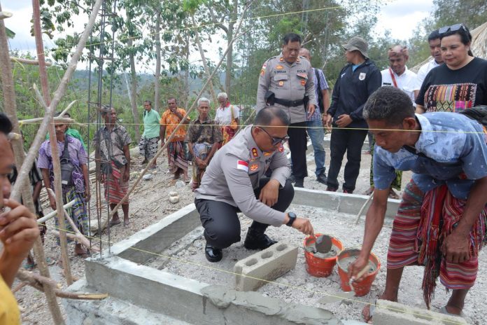 SOE, TTS — Wujud kepedulian sosial kembali ditunjukkan jajaran Polres Timor Tengah Selatan (TTS). Dipimpin langsung Kapolres AKBP Hendra Dorizen, S.H., S.I.K., M.H., personel Polres TTS bersama Relawan Gerakan Seribu Rupiah (Geser), Pemerintah Desa Sini, dan Majelis Jemaat GMIT Imanuel Oebesa SoE melaksanakan aksi bedah rumah bagi seorang janda lansia berusia 80 tahun, Oma Adolfina Nenosaet, warga Desa Sini, Kecamatan Amanuban Timur, Kabupaten TTS.