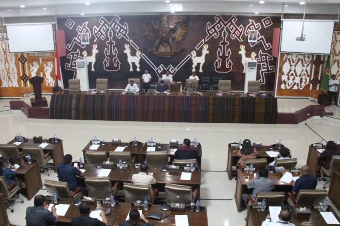 Rapat paripurna tersebut dipimpin Wakil Ketua I DPRD Provinsi NTT Fernando Soares dengan agenda penyampaian laporan Badan Pembentukan Peraturan Daerah (Bapemperda) terkait Rancangan Peraturan Daerah (Ranperda) tentang Perubahan Bentuk Hukum Perseroan Terbatas Bank Pembangunan Daerah NTT menjadi PT Bank Pembangunan Daerah NTT (Perseroda).