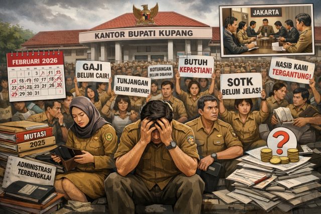 KUPANG – Ribuan Aparatur Sipil Negara (ASN) di Kabupaten Kupang dilaporkan menghadapi situasi sulit pada awal tahun 2026. Hingga memasuki bulan kedua, banyak ASN disebut belum menerima gaji dan tunjangan meski tetap menjalankan tugas kedinasan seperti biasa.