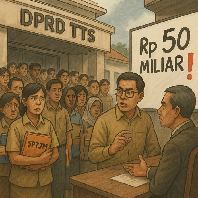 Sebelumnya, ratusan tenaga honorer mendatangi Kantor DPRD TTS, Kamis (25/9/2025), menuntut kejelasan nasib mereka. Mereka menilai Pemda TTS tidak adil karena tetap mewajibkan honorer mengisi Surat Pernyataan Tanggung Jawab Mutlak (SPTJM) meski usulan PPPK tidak diajukan.