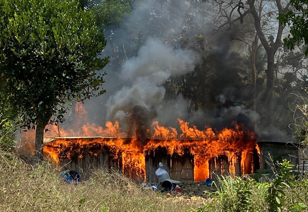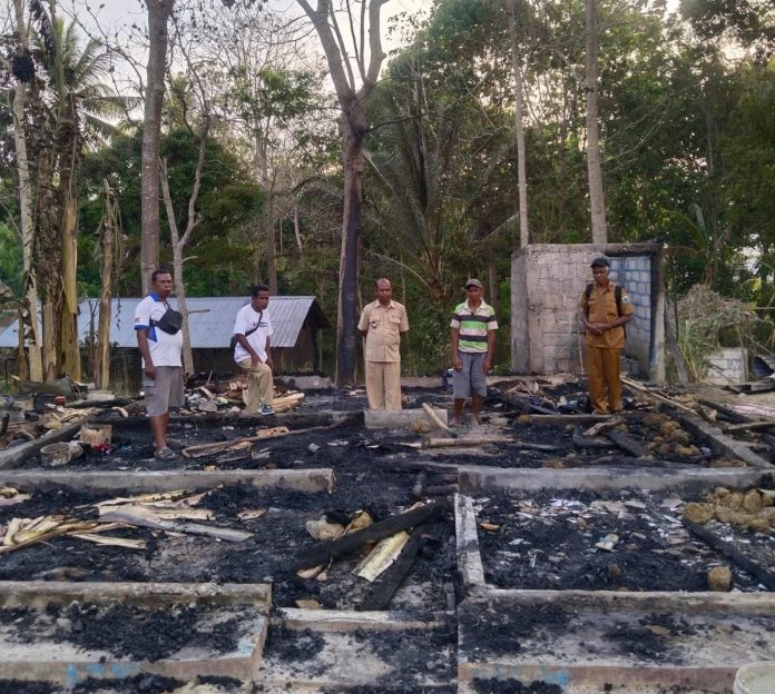 Karena rumah beratap daun ilalang, api dengan cepat menjalar hingga menghanguskan dua bangunan milik keluarga Felipus. Upaya pemadaman oleh warga dan aparat desa tak mampu menahan amukan si jago merah.
