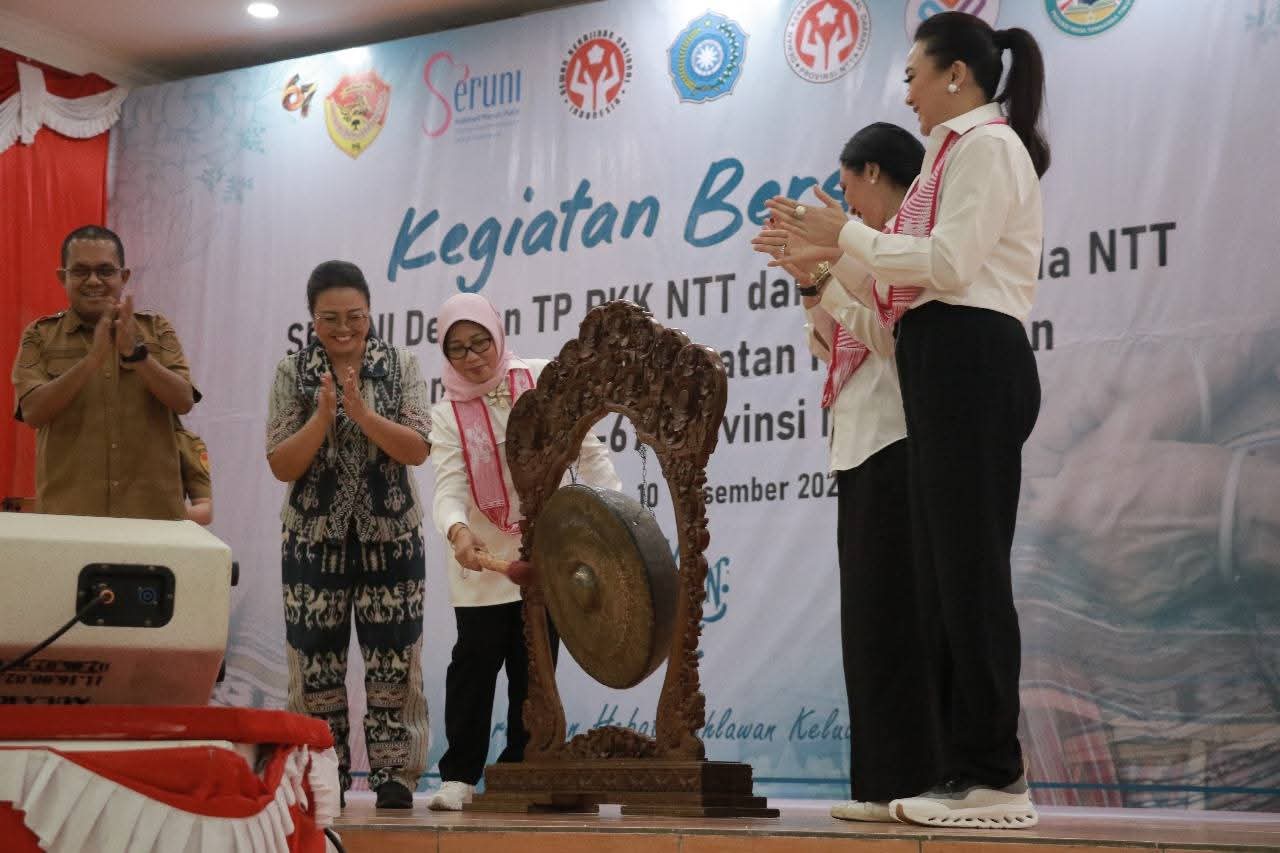 Acara turut dihadiri Penasihat SERUNI Kabinet Merah Putih Ida Siti Faridah Pratikno bersama para istri menteri Kabinet Merah Putih, Ketua TP PKK NTT Mindriyati Astiningsih, Ketua DPRD NTT Emilia J. Nomleni, jajaran Forkopimda, pimpinan OPD lingkup Pemprov NTT, serta TP PKK kabupaten/kota yang bergabung secara daring.