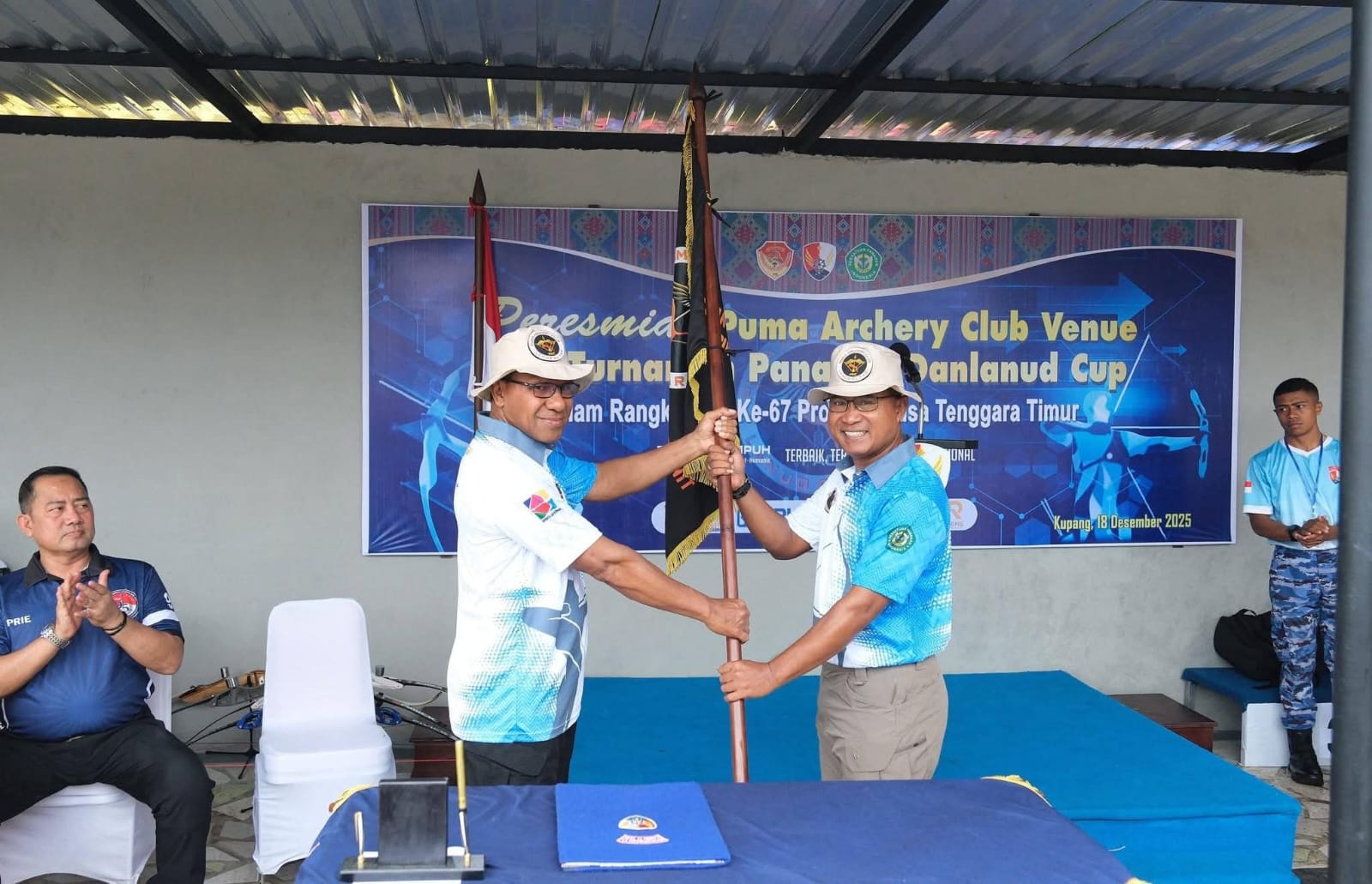 KUPANG – Wakil Gubernur Nusa Tenggara Timur (NTT) Johni Asadoma secara resmi meresmikan Puma Archery Club Venue sekaligus membuka Turnamen Panahan Danlanud El Tari Cup 2025 dalam rangka Hari Ulang Tahun (HUT) ke-67 Provinsi NTT. Kegiatan tersebut berlangsung di Lapangan Panahan Lanud El Tari, Kupang, Kamis (18/12/2025).